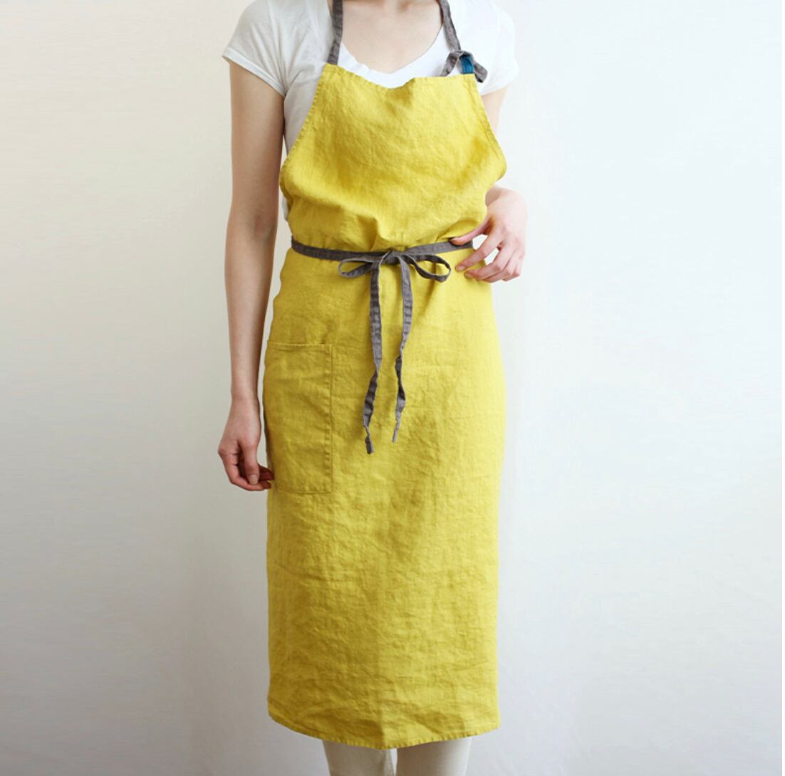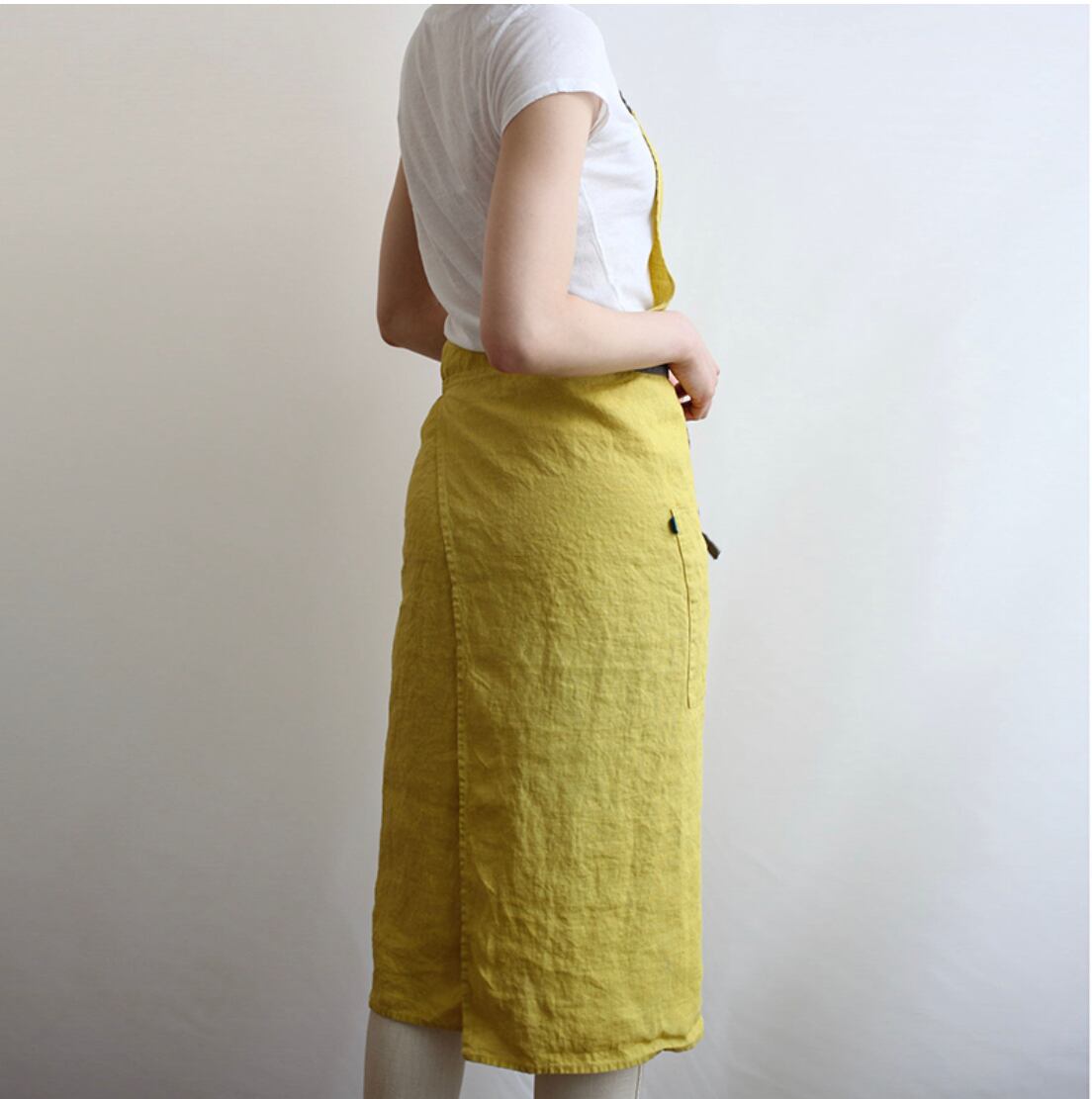 リトアニアリネンエプロン マノン ミモザ/ブルーパヴォーネ