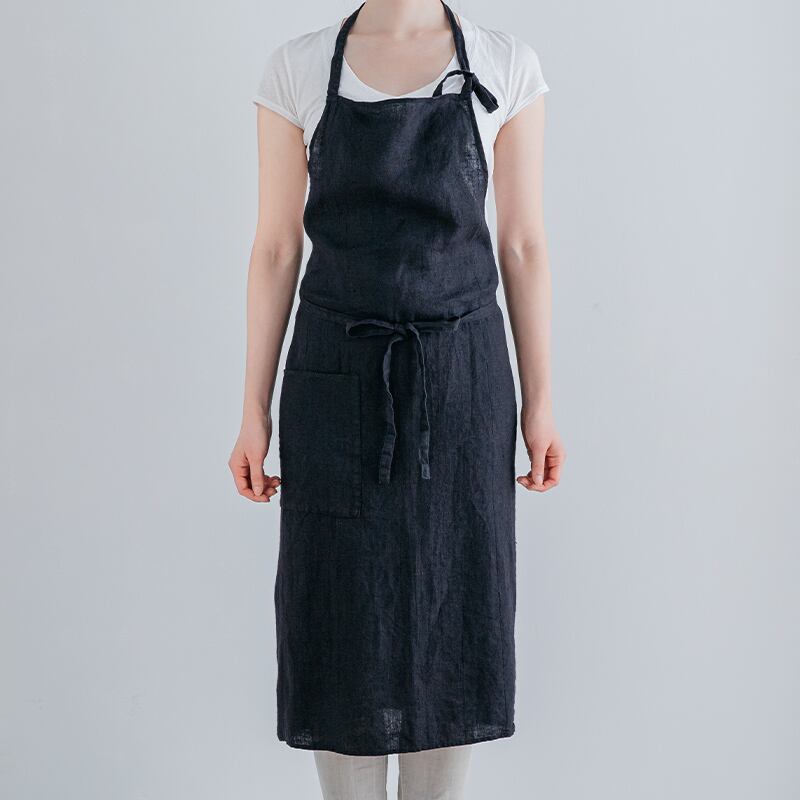 lino e lina リネン フルエプロン マノン ノワール/リーノエリーナ