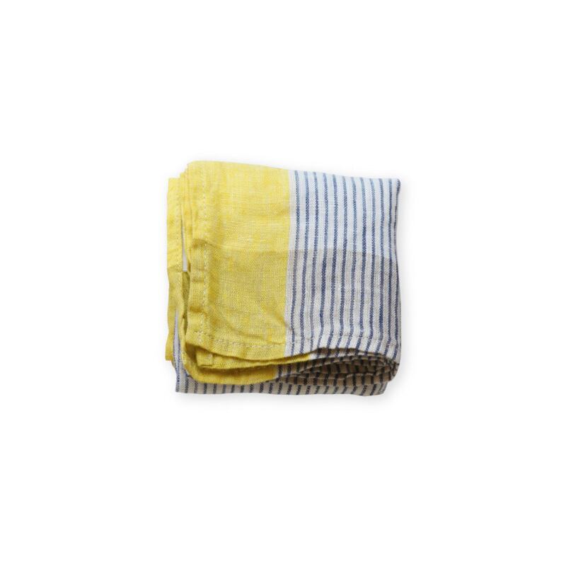 lino e lina リネンハンカチ・ナフキン デルフィ ブルー×イエロー/リーノエリーナ
