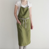 lino e lina リネン フルエプロン マノン オリーブグリーン/リーノエリーナ マノン
