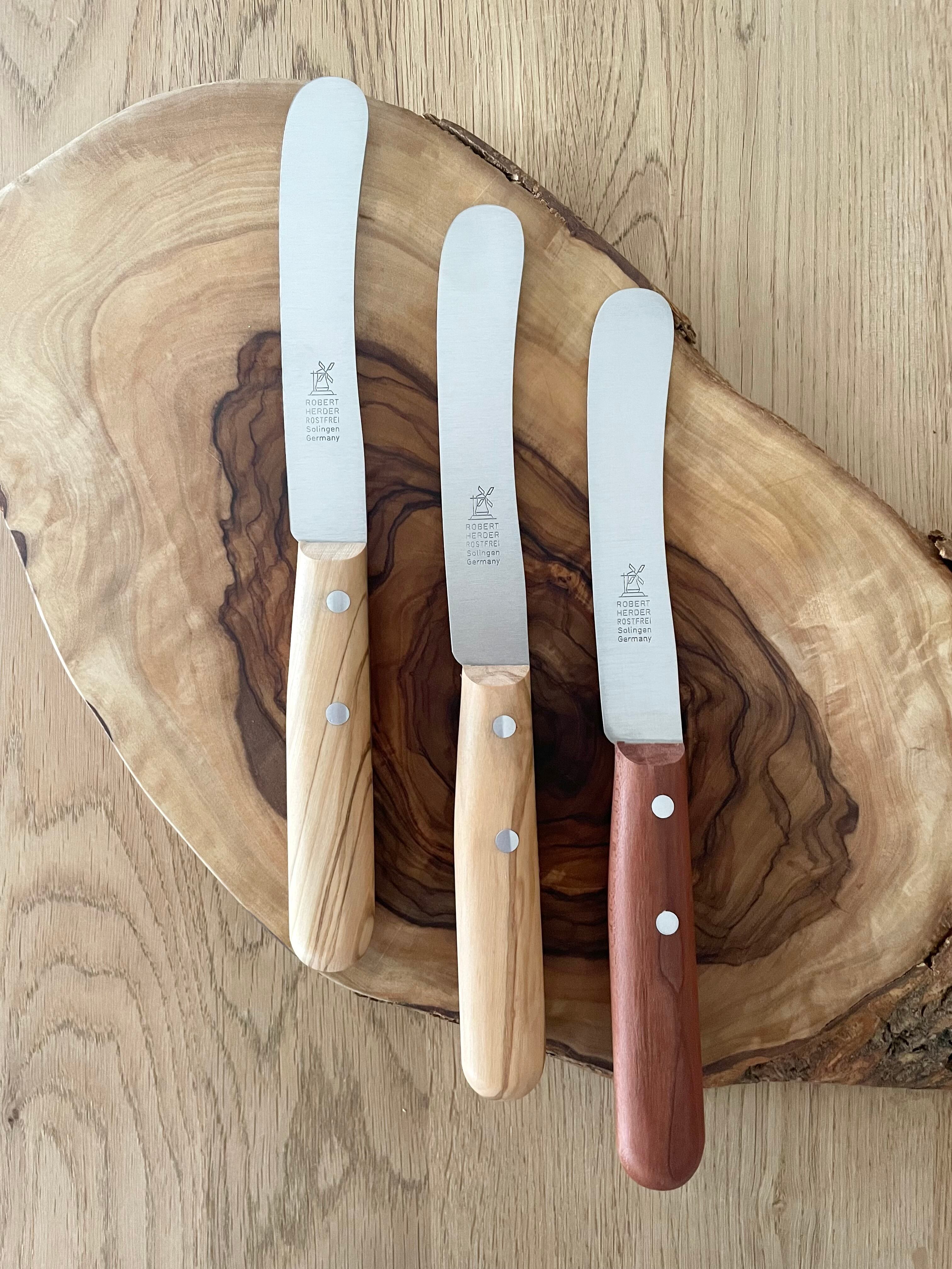 バターやパテをカットしてスプレッドしたり、瓶からジャムなどを取り出すなど、丸い刃先のためテーブルやアウトドアでも様々に使いやすいナイフです。